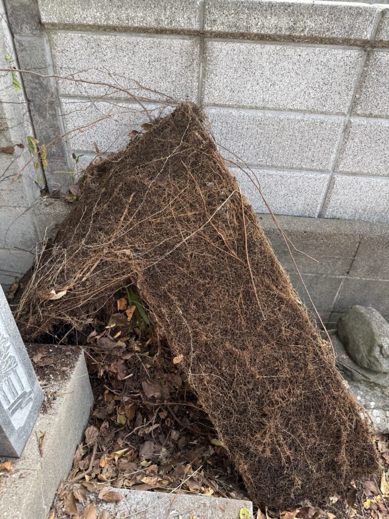 お墓の周りでは、根が層になったどでかい雑草のかたまりがゴッソリ取れて、思わず笑ってしまうほどでした(笑)
