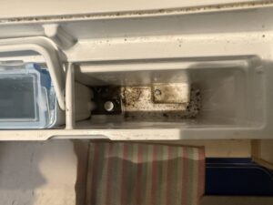 洗濯機の下とか、自動で洗剤を入れる部分って、気づいたら汚れがたまってるんですよね…。でも洗濯機って重いし、なかなか自分では掃除しづらい場所でもあります。
