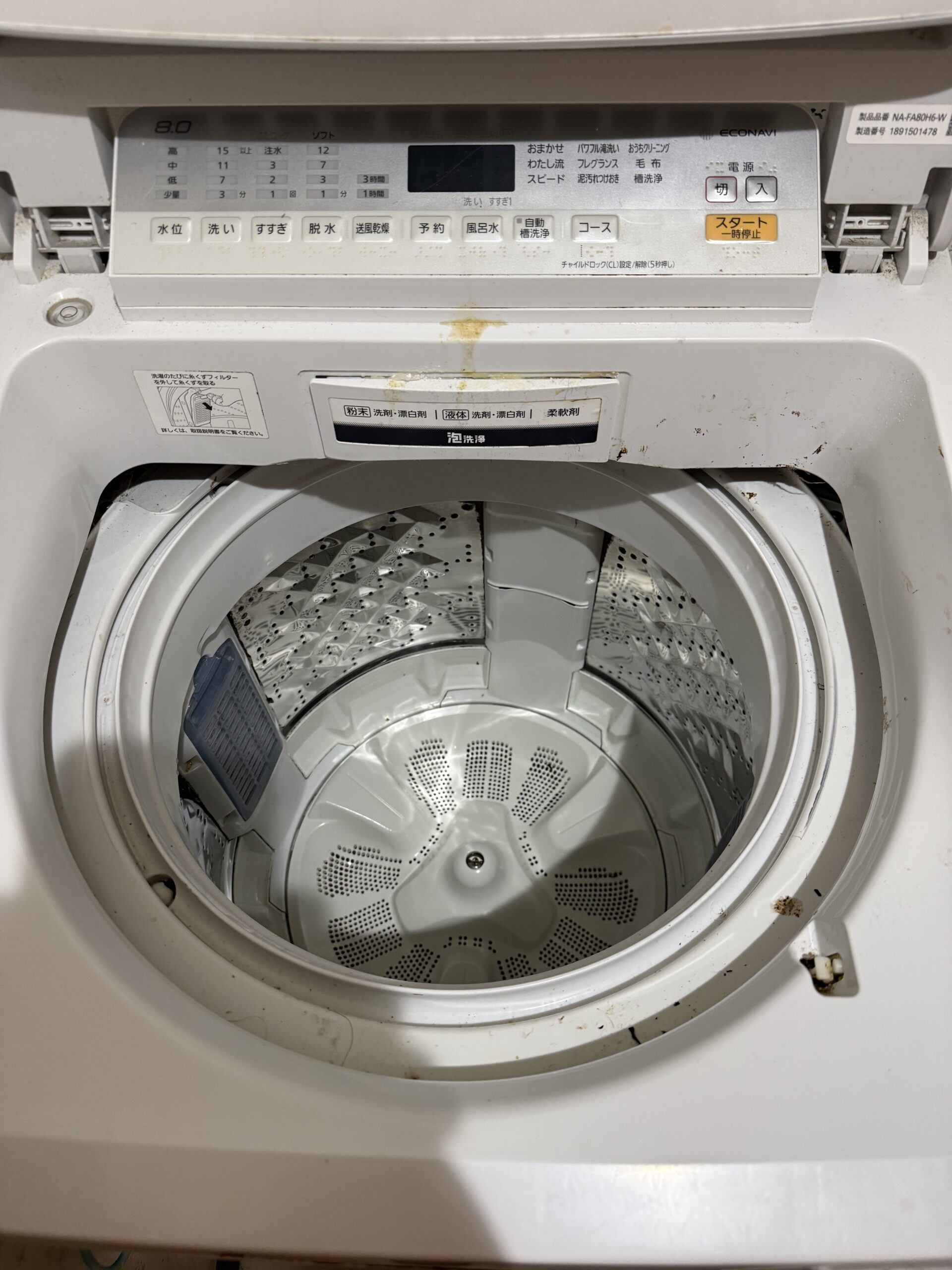 まず洗濯機まわりは、長年のホコリや汚れが溜まっており、狭い部分までしっかりクリーニング。