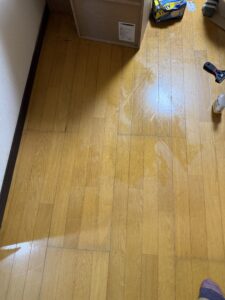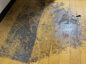 スクレーパーを使いながら、床を傷つけないよう慎重に、ゆっくり丁寧に除去していきました。
