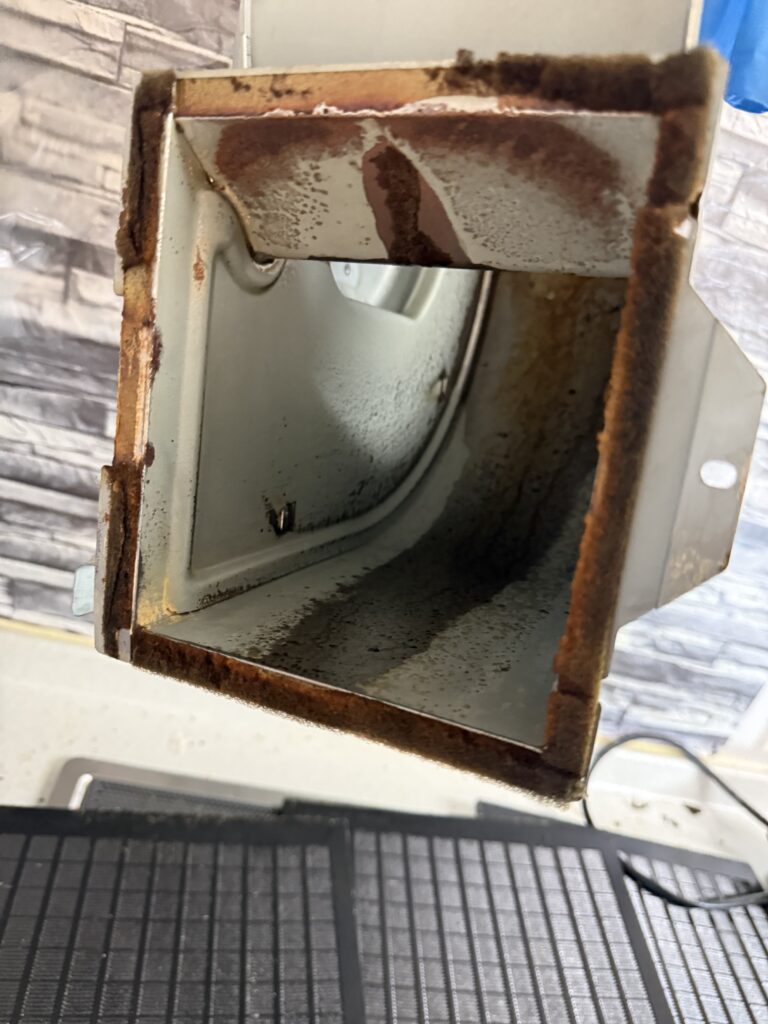ファンやカバーの細かい部分、角や隙間に汚れが溜まっている印象でした。